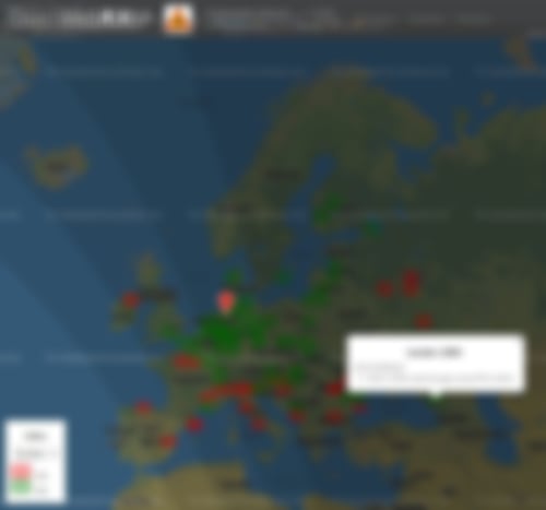 Mit „Map“ kann eine Karte aufgerufen werden, in der die Standorte der in bestimmten Betriebsarten aufgenommene Stationen angezeigt werden (z.B. FT8 oder Packet, WSPR….). Im nächsten Bild sind die Standorte der FT8 Stationen vom 40 und 80 Meter-Band angezeigt. So kann man sich auch einen Überblick über die eigene Antennenanlage verschaffen, wenn man so einen OWRX an die eigene Antenne hängt. Die Fehlermeldung von Google bitte einfach ignorieren :-).
