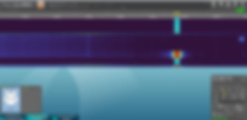 Mit dem Plus- und Minuszeichen lässt sich die Spreizung des angezeigten Frequenzspektrums anpassen (Mehrfachklicken!). Dies kann man aber auch mit dem Scrollrad der Maus erledigen, wenn der Mauszeiger im Wasserfall steht. Im gespreiztem Modus kann man mit der gedrückten rechten Maustaste den angezeigten Bereich verschieben.